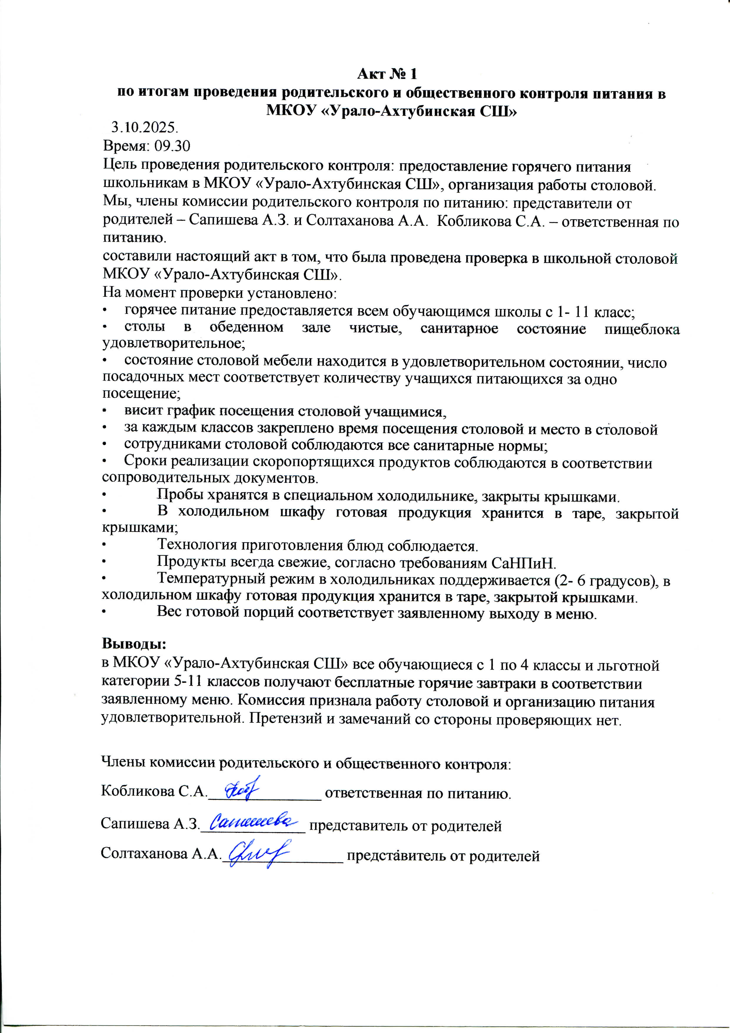 АНАЛИЗ АНКЕТИРОВАНИЯ учащихся и родителей по вопросам организации питания в МКОУ "Урало-Ахтубинская СШ"