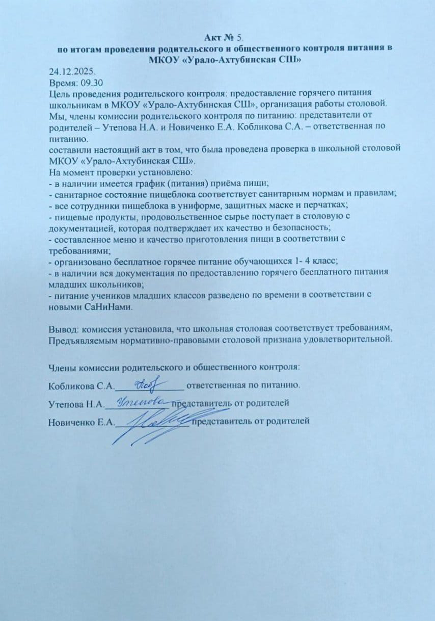 Сведения об организаторе питания в МКОУ "Урало-Ахтубинская СШ"